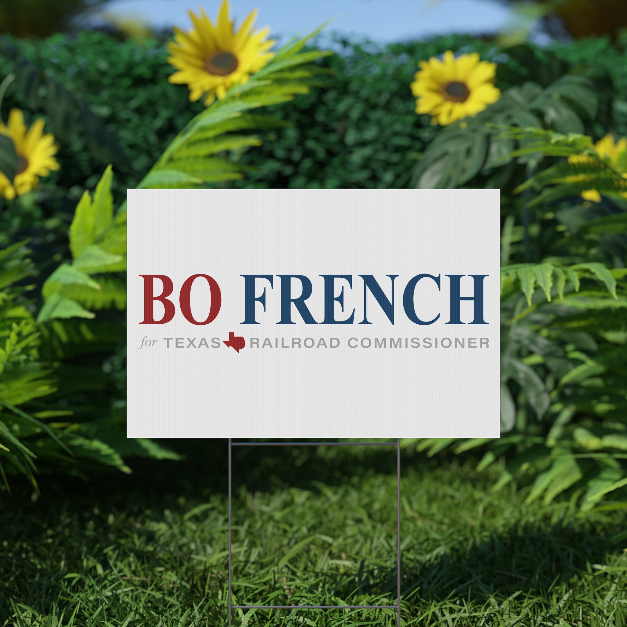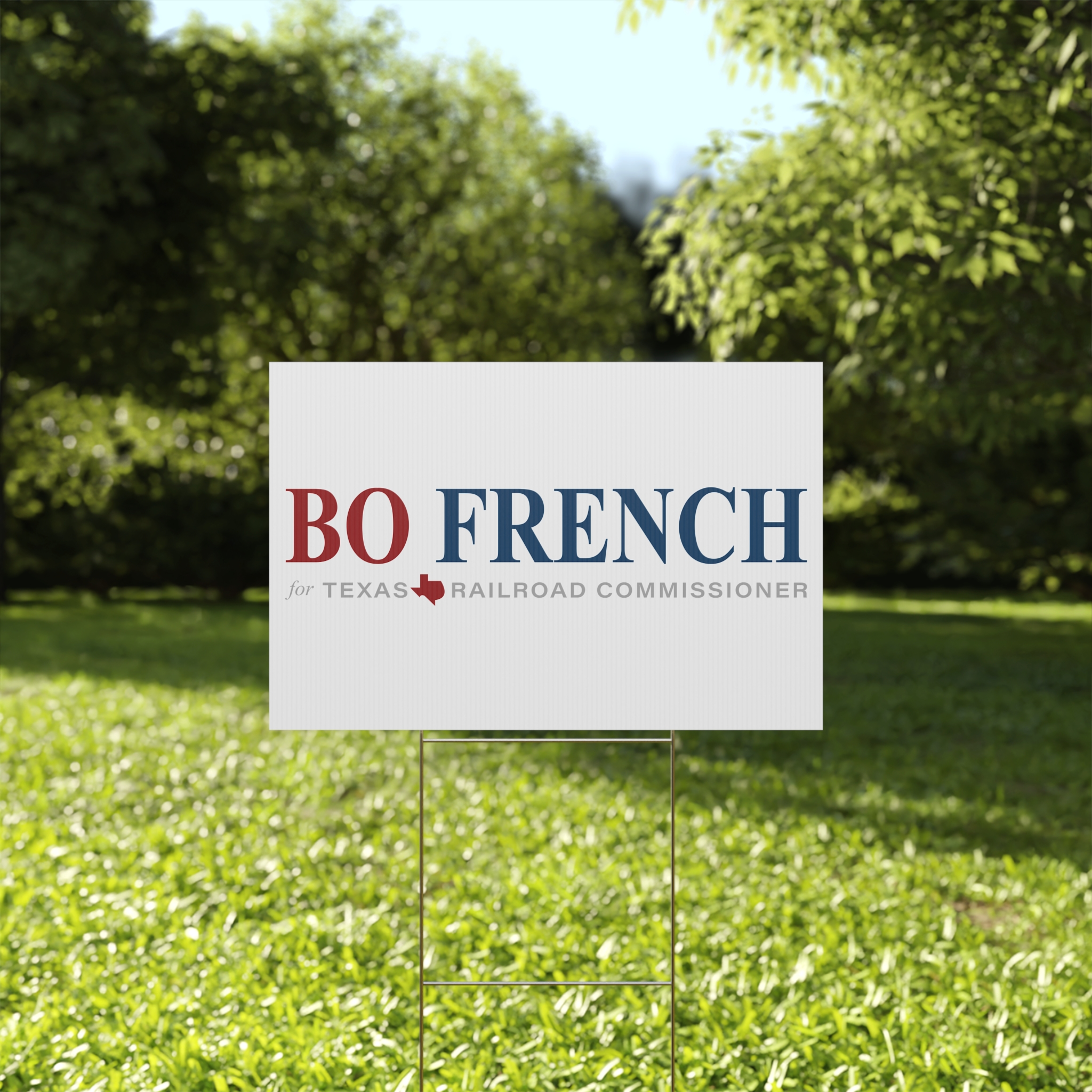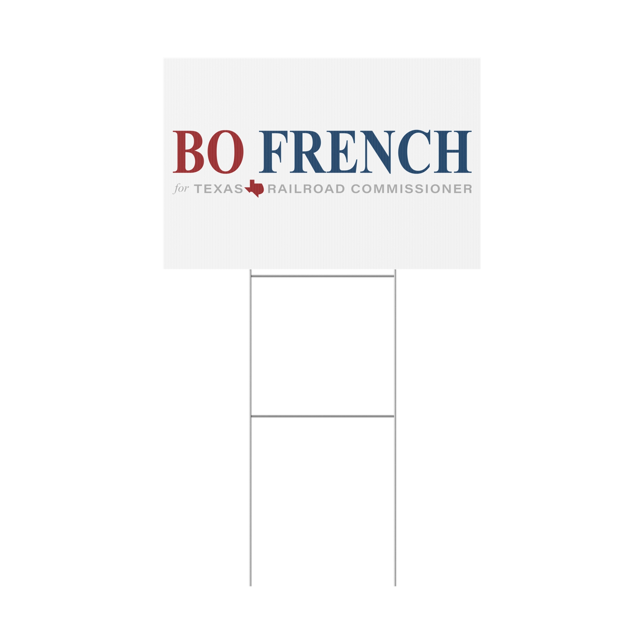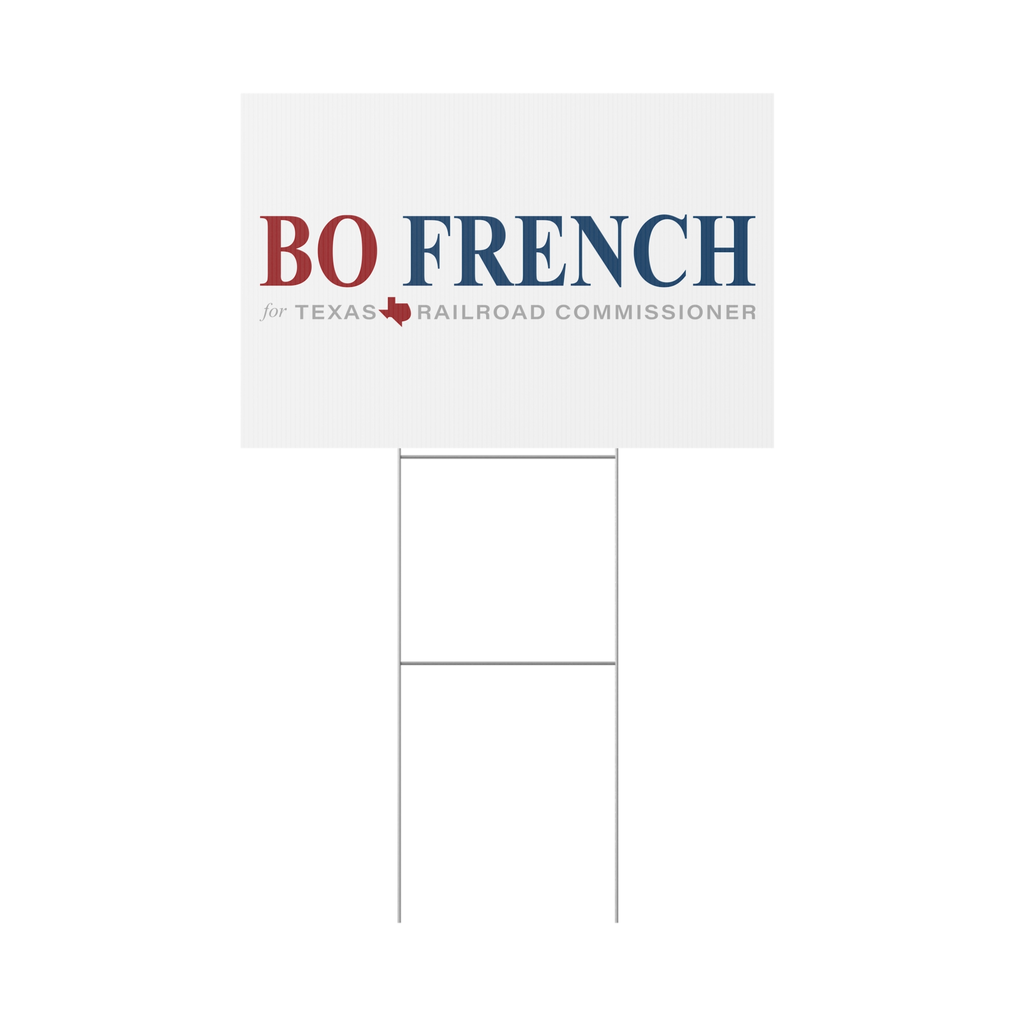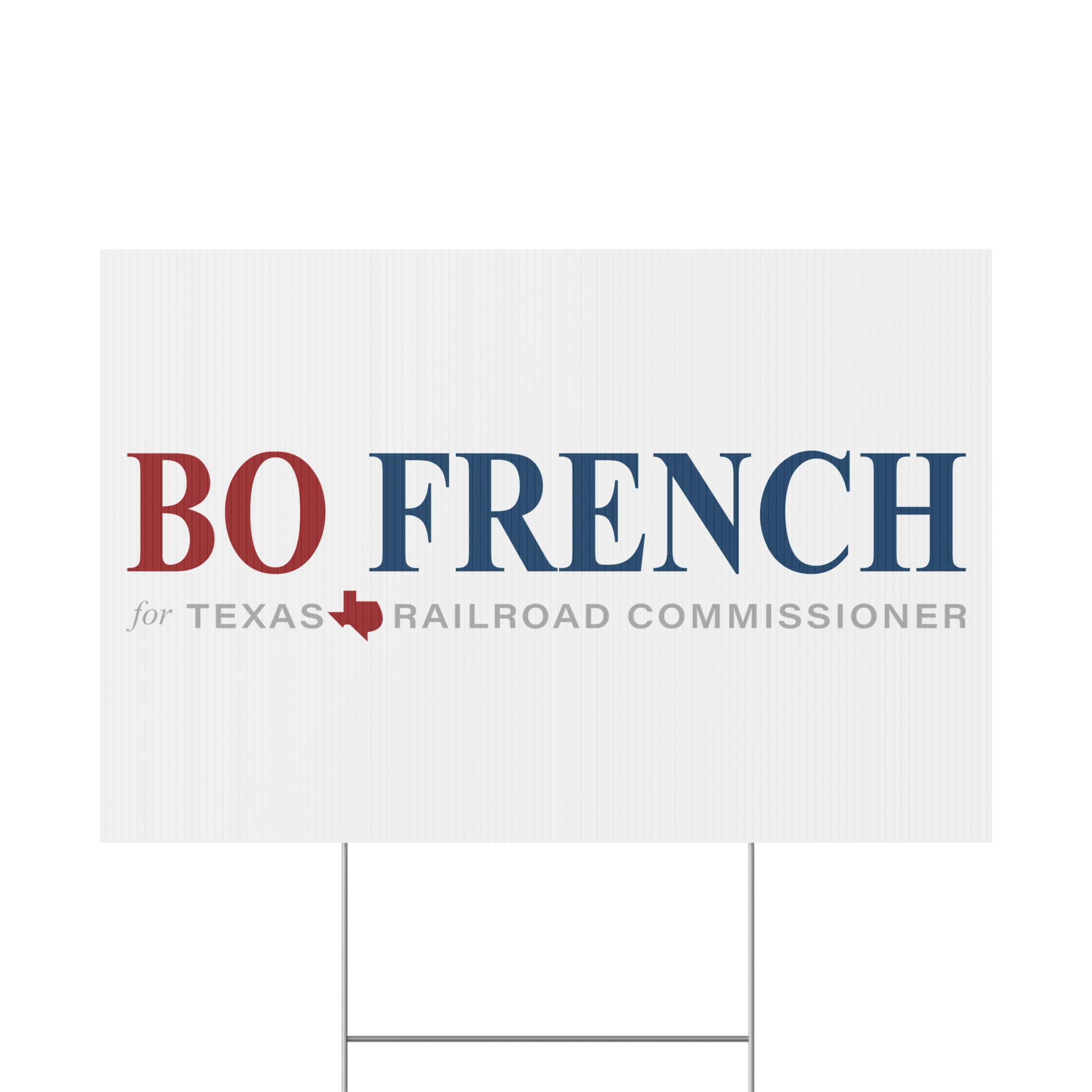 Bo French For Texas Railroad Commissioner Yard Signs that brings clear, confident messaging to your lawn. Built from 4mm corrugated plastic with a matte finish, this sign stands up to wind and rain while keeping printed colors crisp on both sides. The included aluminum stake slips into the sign for quick installation and steady display. Choose landscape or portrait orientation and one of three sizes to fit front-yard beds, sidewalk edges, or campaign lines. Made and printed in the USA, it’s a simple way to make a visible statement outdoors — from campaign yards to neighborhood announcements.