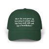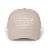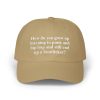 A low-profile How Do You Grow Up Listening to Punk and Hip Hop and Still End Up a Bootlicker Hat with a soft, lived-in feel and a bold, stitched statement across the front. This dad cap settles easily on the head, the pre-curved Permacurv® visor shading your eyes while the antique-brass hideaway strap lets you fine-tune the fit. The neutral, sand-toned fabric and matched underbill keep the look clean and versatile. Wear it out to shows, record stores, or late-night drives — it reads like a quiet declaration from someone who grew up on punk riffs and hip-hop breaks but still knows how to sit back and watch the world unfold.