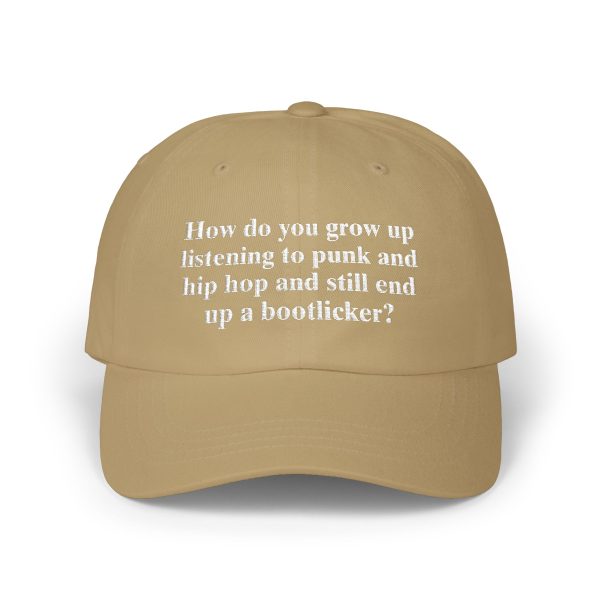 How Do You Grow Up Listening to Punk and Hip Hop and Still End Up a Bootlicker Hat is sharp, rebellious, and unapologetic. Built for counterculture fans who value anti-authority humor, political satire, and statement streetwear that sparks reactions, debates, and knowing nods everywhere.