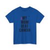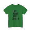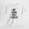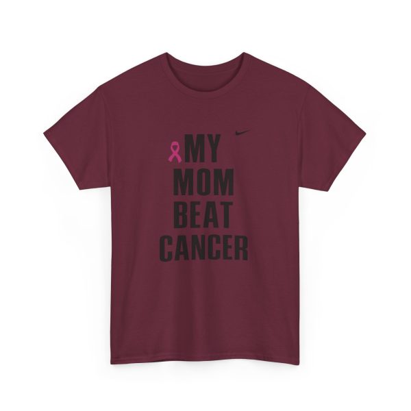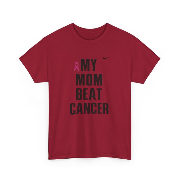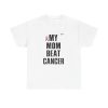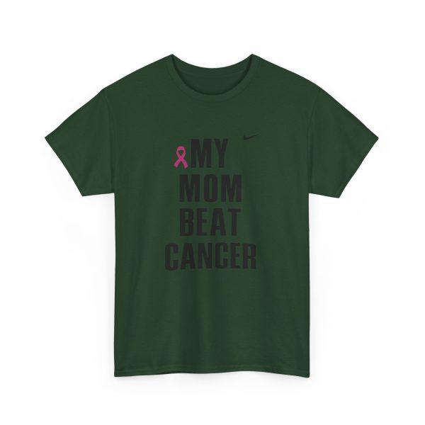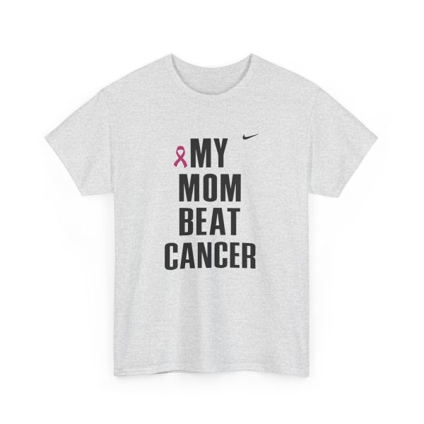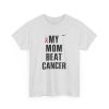A clean, honest tee that carries a short but powerful message: MY MOM BEAT CANCER. Lightweight yet sturdy, this shirt is made to be worn close to the heart — at hospital corridors, survivorship celebrations, walks for awareness, or quiet coffee dates where stories are shared. The bold, all-caps typography and the small pink ribbon create a clear, understated statement of resilience. Its classic crew neck and relaxed fit make it easy to layer under a jacket or wear on its own. Expect soft, durable cotton that holds up to frequent wear and washes while keeping its shape. This tee speaks simply and lovingly, letting the story of survival lead the conversation.