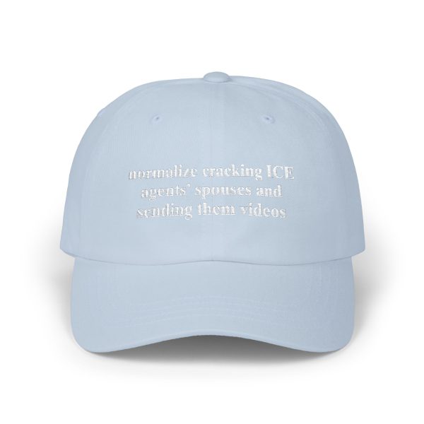 Normalize Cracking ICE Agents’ Spouses and Sending Them Videos Hat is a bold, satirical statement piece calling out ICE practices. Perfect for activists, protest culture fans, and those who love edgy, political humor.