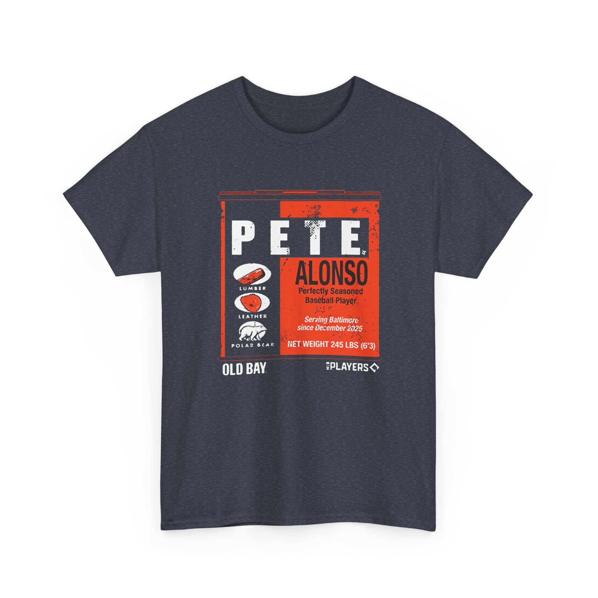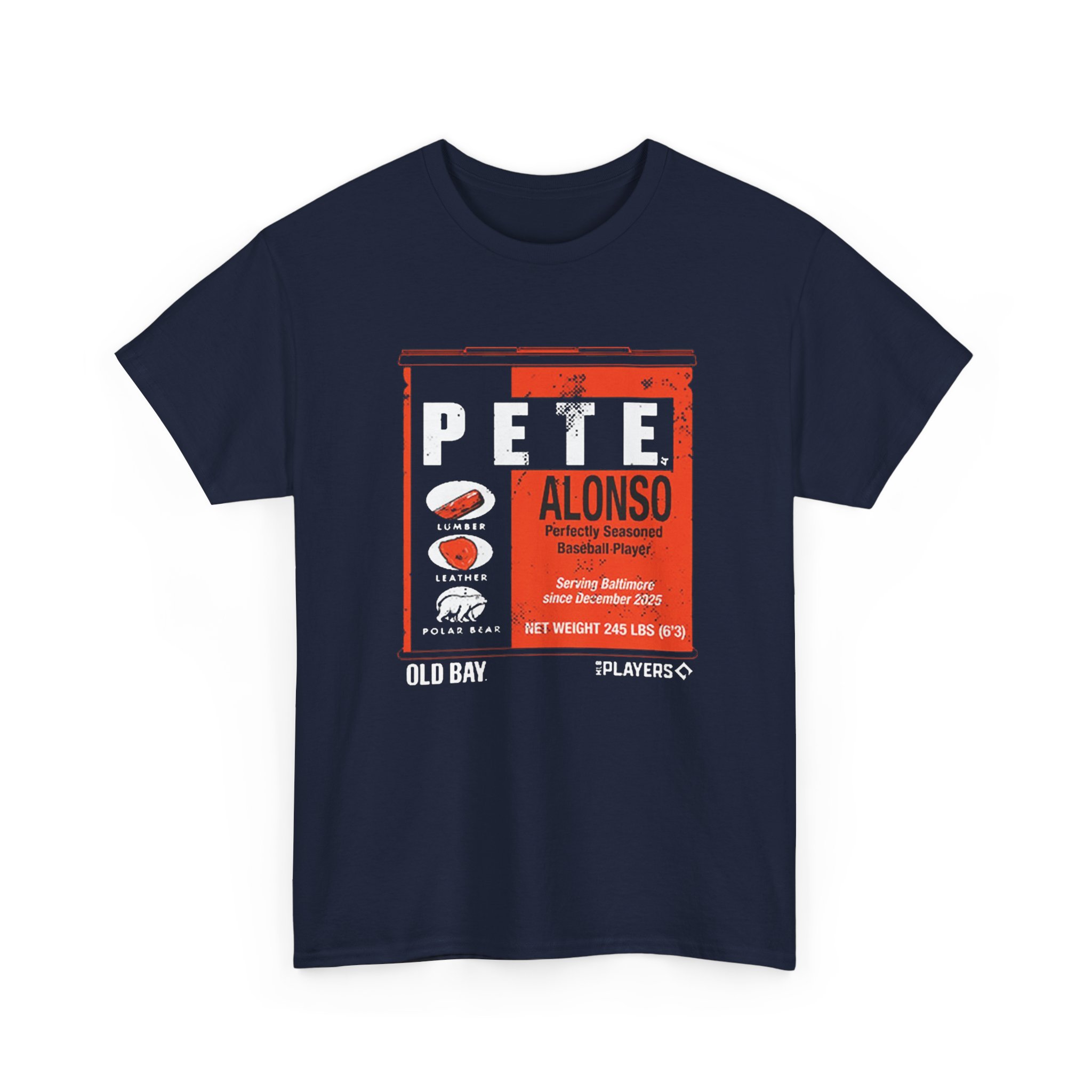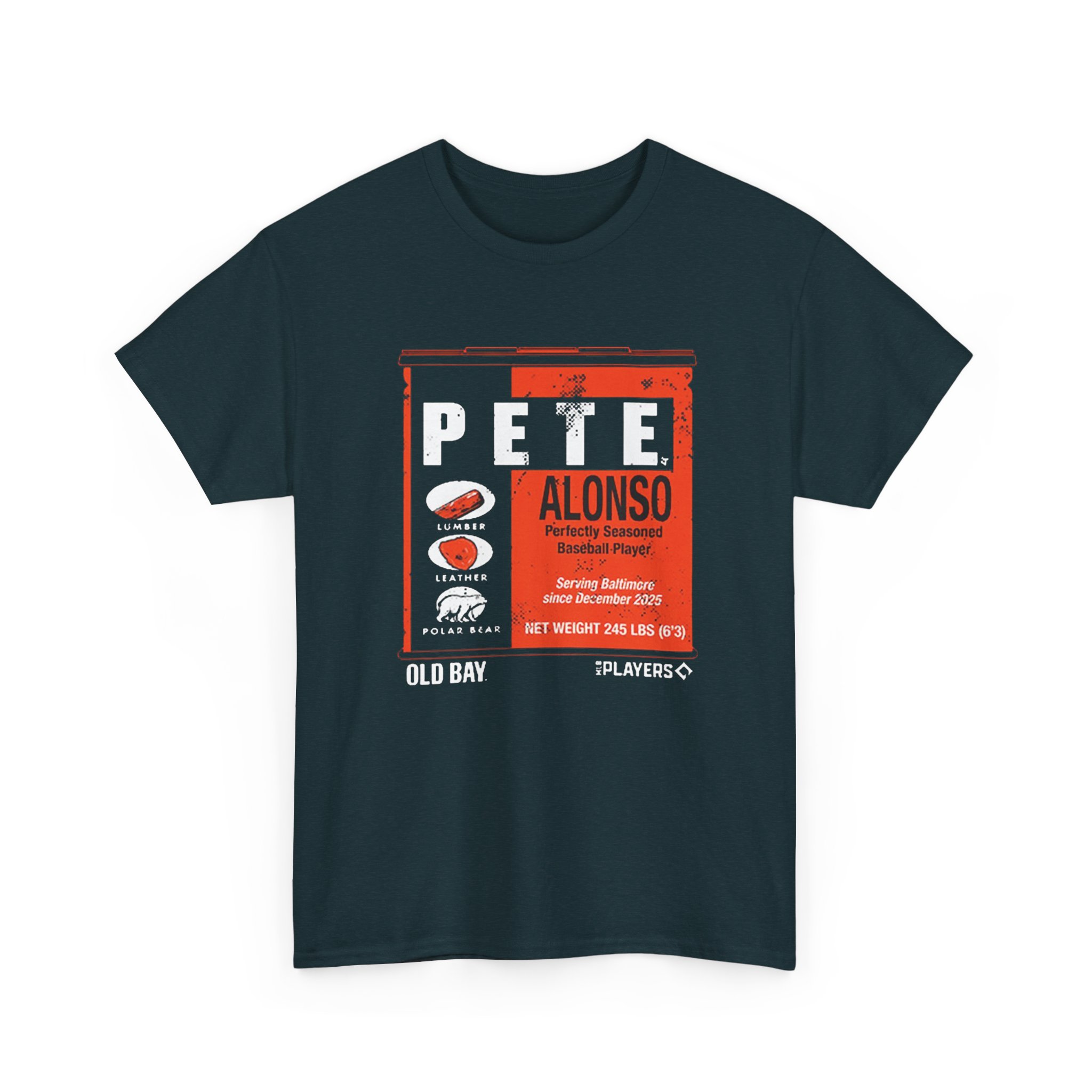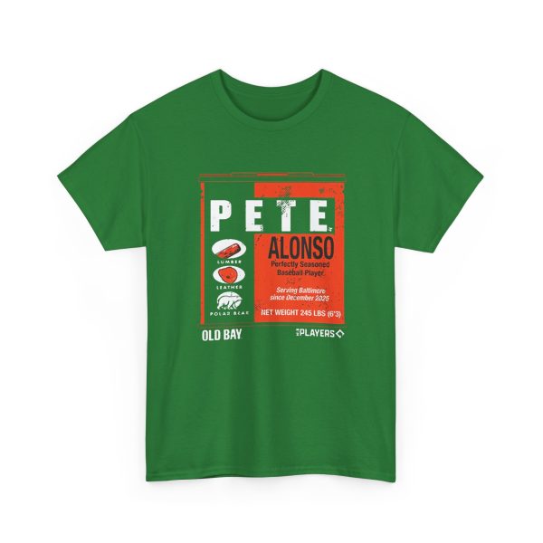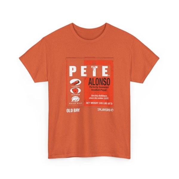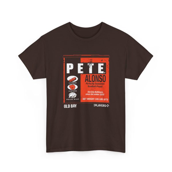 The Pete Alonso Old Bay Can shirt is a fan T-shirt inspired by baseball slugger Pete Alonso and the iconic Old Bay seasoning can design, blending sports fandom with Baltimore culture. Old Bay shirts normally showcase the classic can artwork and come in cotton or cotton-blend tees featuring bold, screen-printed graphics that celebrate Maryland and baseball style. Old Bay apparel is popular locally and makes a fun casual piece for fans. While specific “Old Bay Can” Pete Alonso shirts appear through custom merch sellers, similar themed tees can be found online from fan shops and custom print creators.