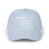 A soft, lived-in dad cap embroidered with quiet, ironic text that reads across the front and back — this hat carries a wry, conversational edge without shouting. Lightly structured with a low profile, it molds to your head and sits just right above the eyes. The muted sand color and subtle white embroidery make it easy to pair with jeans, a hoodie, or an oversized jacket. Wear it on walks, long drives, or when you need a small, personal statement that reads like a shrug. The antiqued brass buckle and hideaway strap give a vintage touch, while the precurved visor and sewn-in label keep it feeling authentic and durable. It fits adults and adjusts for a custom, comfortable fit.