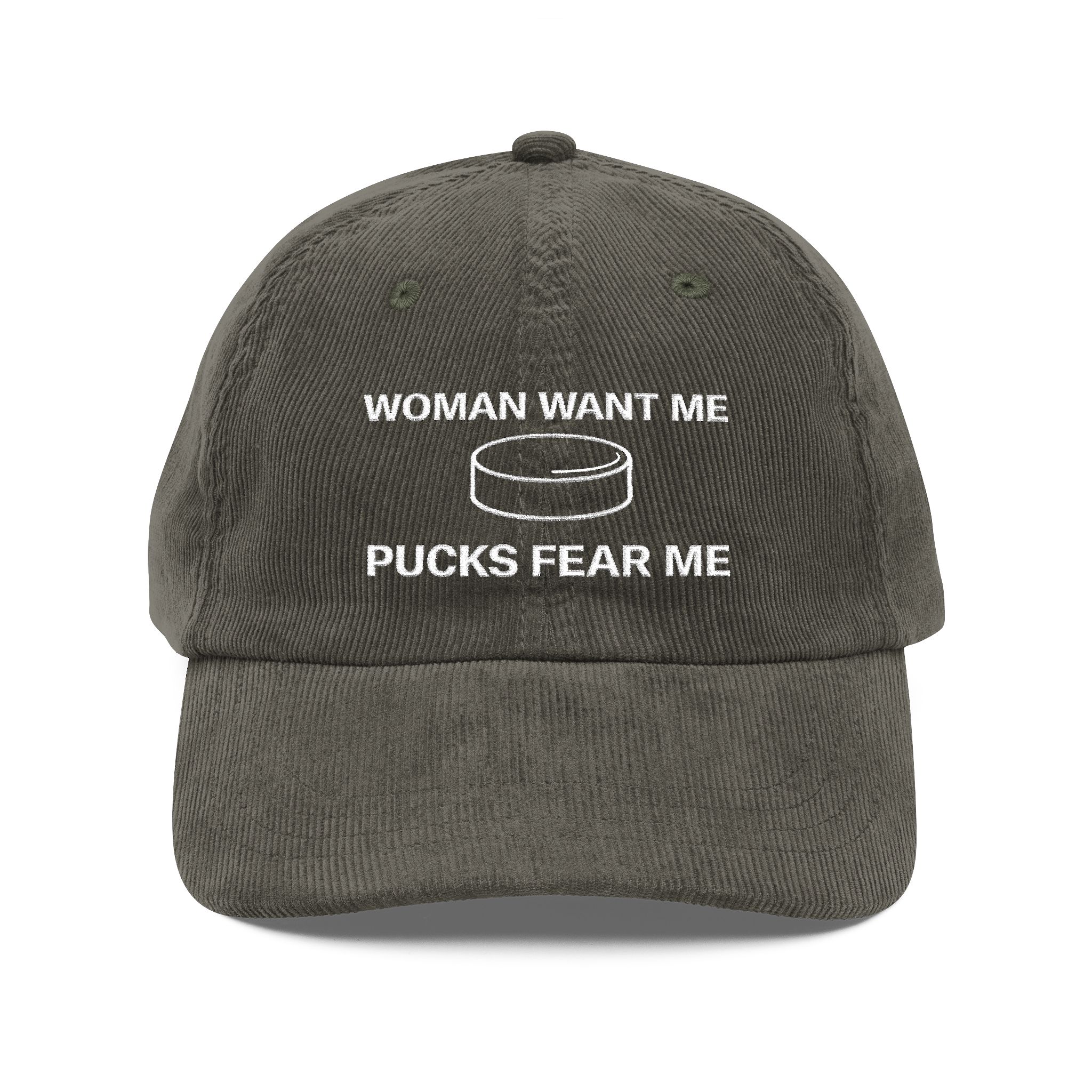 Woman Want Me Pucks Fear Me Hat -Funny Hockey Meme Cap for Players and Fans
